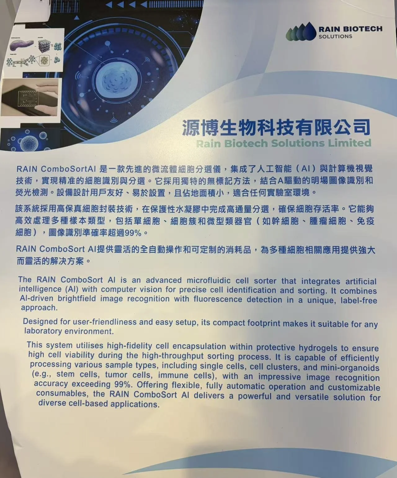 HONG KONG — Taking center stage at the Smart Hong Kong Pavilion during InnoEX 2026, RAIN Biotech Solutions has unveiled a breakthrough in laboratory automation: the RAIN ComboSort AI. This advanced microfluidic cell sorter is setting a new benchmark for high-throughput biological analysis, securing the 2nd Runner-Up Prize at the prestigious Maker in China awards.
